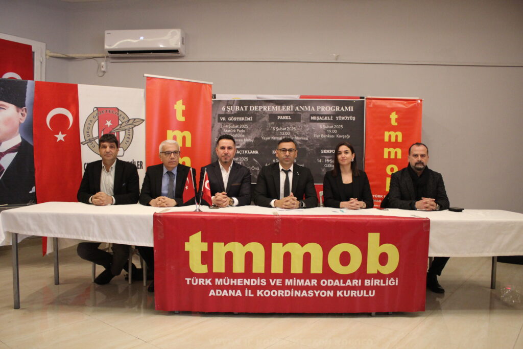 Türkiye Mimar Mühendis Odaları Birliği (TMMOB) Adana İl Koordinasyon Kurulu (İKK); Çukurova Gazeteciler Cemiyeti Kültür ve Sosyal Tesisleri’nde depreme dair basın toplantısı düzenledi. Yapılan açıkamada konuşan TMMOB Adana İKK Sekreteri Kerem Şahin, Türkiye coğrafyasının deprem riski altında olduğu, ülkeyi yönetenlerin yaşanan depremlerden gerekli dersi almadığı ve almamakta da ısrarcı davrandığı belirti. Rant için bilim ve kamu yararının hiçe sayıldığı, mevcut iktidarın politikaları ile tüm doğa olaylarının nasıl birer afete dönüştüğünü aktaran Şahin, deprem ve sellerle gelen acı deneyimlerle yaşandığı ifade etti.