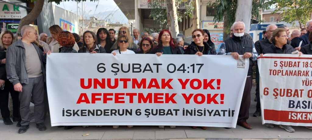 Kahramanmaraş merkezli 6 Şubat 2023 tarihinde meydana gelen 7.7 ve 7.6 büyüklüğündeki depremlerin üzerinden 2 yıl geçti. Hatay’ın İskenderun ilçesinde; İskenderun Deprem İnisitiyatifi, Sağlıklı Yaşam Parkı’nda yaptıkları basın açıklaması ile depremde yaşamını yitirenleri andı.