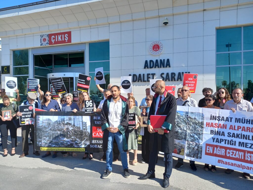 Kahramanmaraş merkezli 6 Şubat’ta meydana gelen depremlerde Adana’nın Çukurova ilçesinde yıkılan Hasan Alpargün Apartmanı’nda 96 kişinin yaşamını yitirmesine dair açılan davanın karar duruşması Adana 12’nci Ağır Ceza Mahkemesi’nde bugün devam edilecek. Duruşma öncesi Adana Adliyesi önünde depremzedelerin aileleri ve avukatları açıklama yaptı. Aileler, adil yargılama istediklerini belirterek, sanığın “taksirle ölüme ve yaralanmaya neden olma” suçundan değil “olası kastla” cezalandırılmasını istediklerini belirtti.