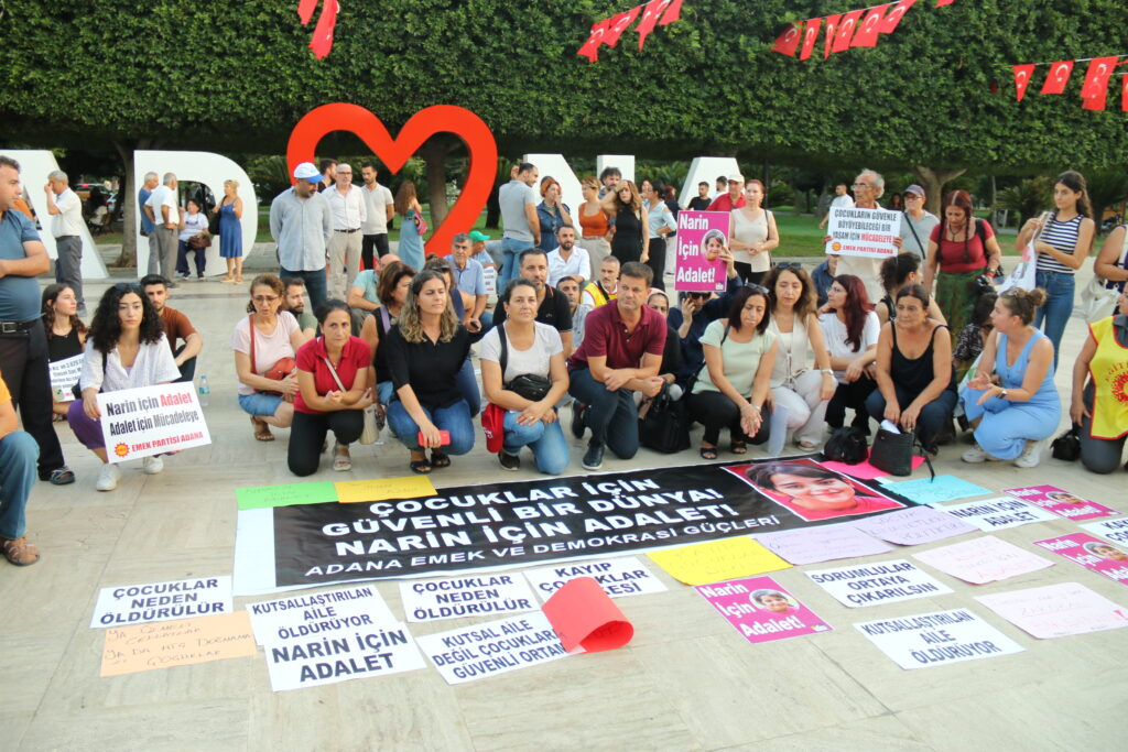 Adana Emek ve Demokrasi Güçleri’nin çağrısıyla yurttaşlar, Narin için İnönü Parkı’nda bir araya geldi.