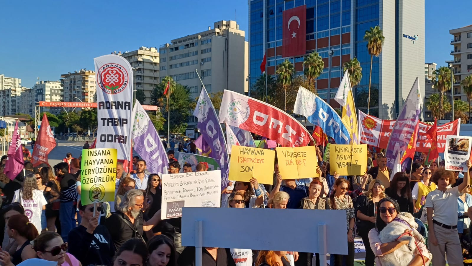 Anayasa Mahkemesinin 160 sayılı “Hayvanları Koruma Kanunu’nda Değişiklik Yapılmasına Dair Kanuna” yönelik açılan 17 maddelik iptal davasını Genel Kurul gündemine almasıyla Adana’da “Yasayı iptal et” şiarıyla miting düzenlendi. Hayvan severlerin ve kentteki siyasi parti ve sivil toplum örgütleri ile yurttaşlar Kasım Gülek Köprüsü’nde bir araya gelerek Uğur Mumcu Meydanı’na kadar ”Yasayı iptal et, katliam yasasına karşı meydanlardayız” diyerek yürüdü. Mitingde “AYM yasayı iptal et”, “Bu yasayı durduracağız”, “Kısırlaştır, aşılat, yerinde yaşat”, “Hayırsız ada, bir daha asla”, “Hayvan, yaşam, özgürlük” sloganları atılırken, mitinge DEM Parti Mersin Milletvekili Perihan Koca, EMEP Milletvekili Sevda Karaca katıldı.