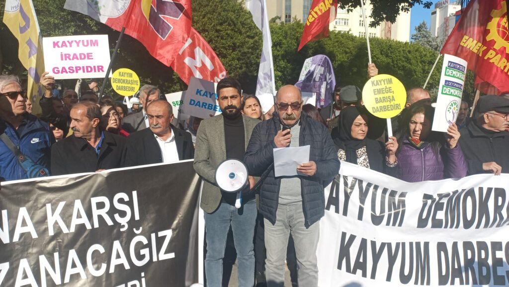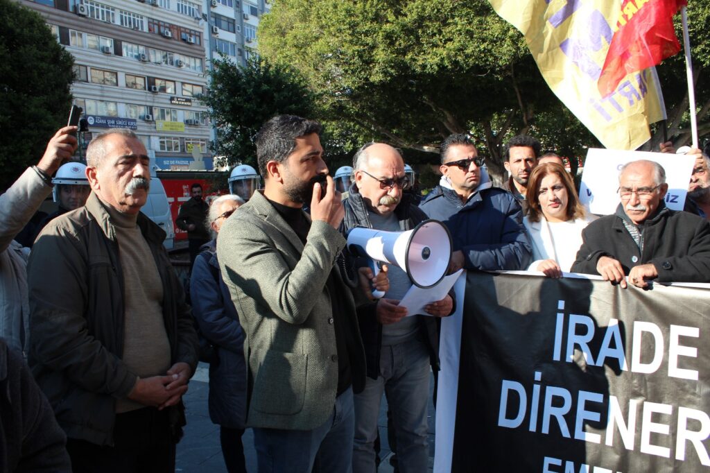 Ataş ardından ortak basın metnini Tüm Bel Sen Adana Şube Başkanı Mehmet Çelik okudu. Çelik, “AKP-MHP iktidarı son olarak Bahçesaray’a kayyım atayarak hukuksuzlukta ve kötülükte ısrar etmeye devam ediyor. Kayyım politikalarının demokrasiye, insan haklarına ve halk iradesine büyük bir darbe olduğunu vurguluyoruz. Diyor ve iktidarı bu hukuksuzluk ve kötülüklerden vazgeçmeye davet ediyoruz” dedi.