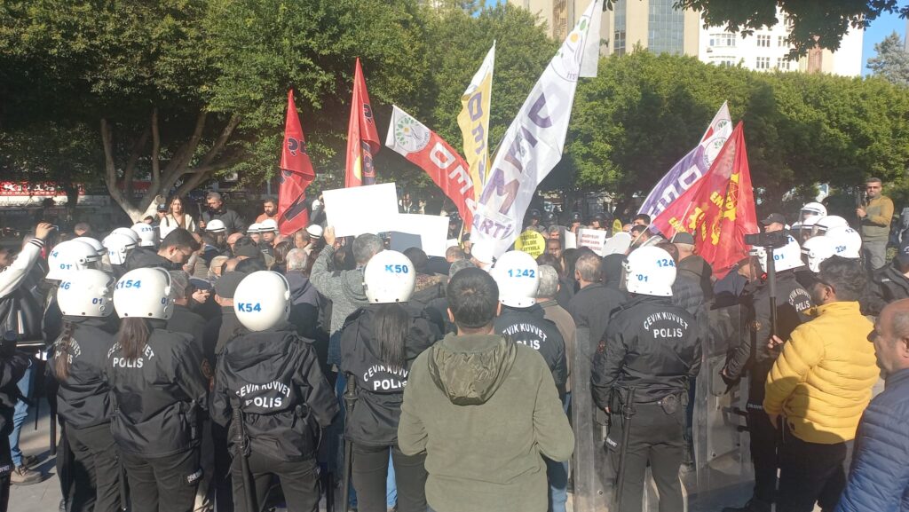Adana Emek ve Demokrasi Güçleri, Van’ın Bahçesaray Belediyesi’ne 29 Kasım’da kayyum atanmasını İnönü Parkı’nda yaptıkları basın açıklaması ile protesto etti. Parkı içinde toplanan grup slogan atarak, açıklama yapmak istedi. Polis, grubu çembere alıp, dağılmamaları takdirde müdahale edeceğini belirtti. Ancak grup polisin “dağılın” uyarısına rağmen açıklama yaptı.
