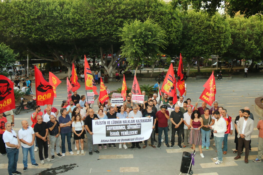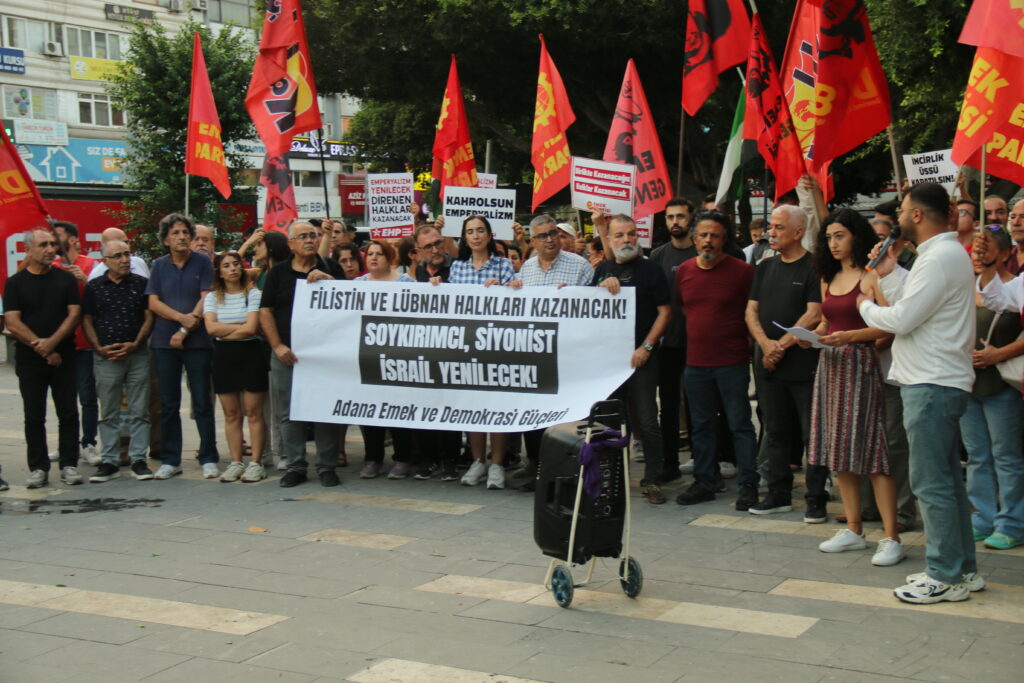 Adana Emek ve Demokrasi Güçleri, İsrail’in Gazze ve Lübnan ile Ortadoğu’nun diğer ülkelerine dönük gerçekleştirdiği saldırıları İnönü Parkı’nda yaptıkları basın açıklaması ile kınadı.