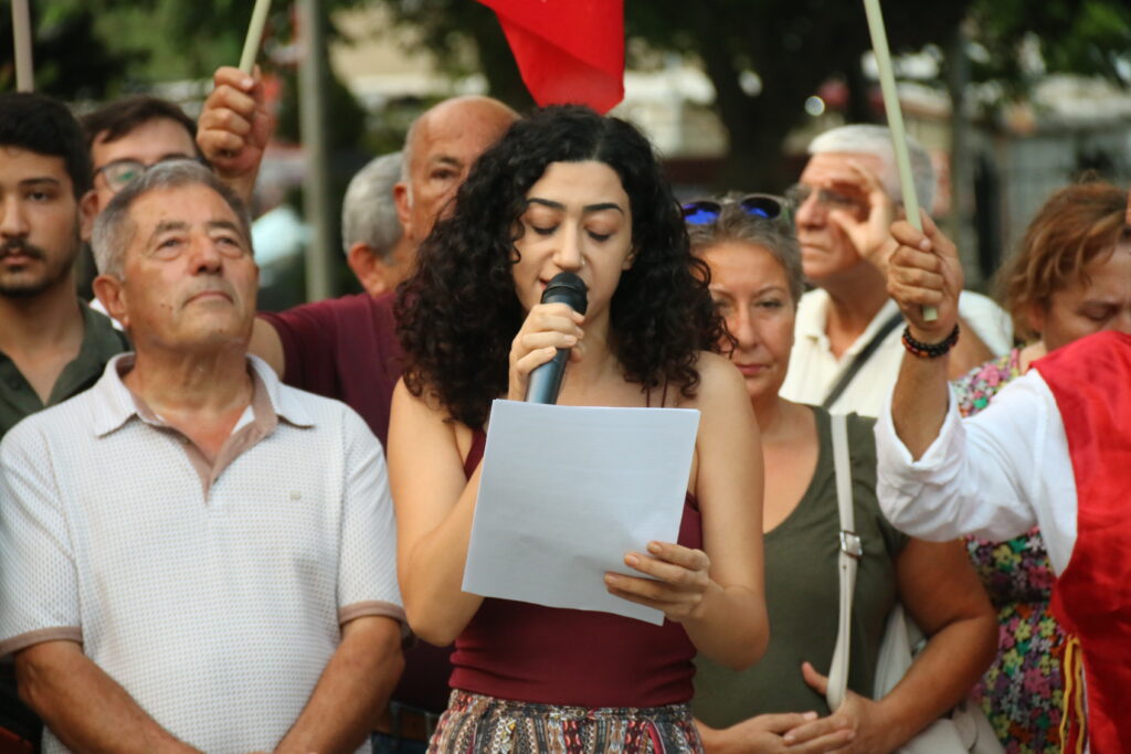 Adana Emek ve Demokrasi Güçleri adına basın metnini Emek Partisi (EMEP) Adana İl Yöneticisi Seren Elataş okudu.