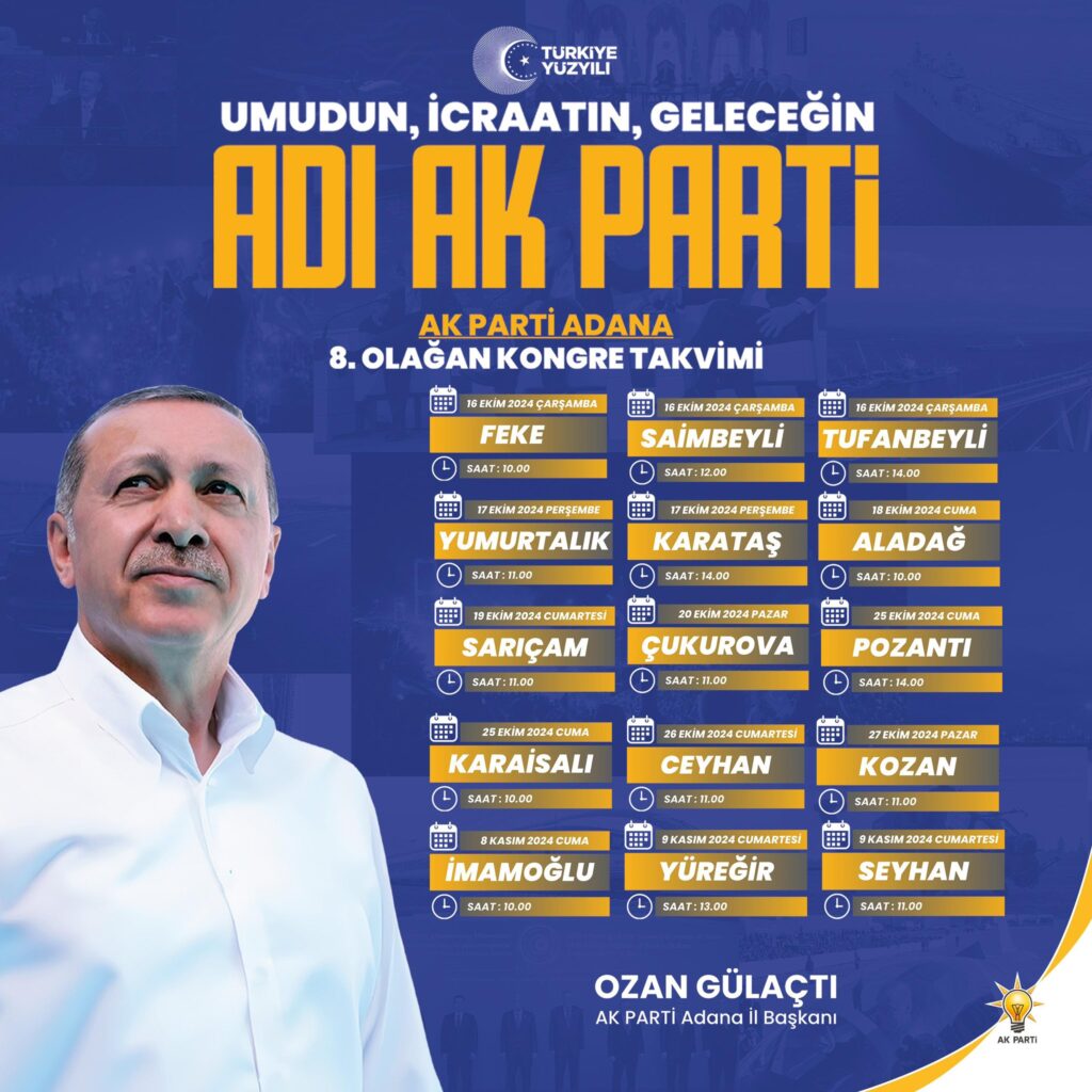 AK Parti, “Umudun, İcraatın, Geleceğin Adı AK PARTİ” ve “Durmak yok, hizmete devam!” sloganıyla Adana’da ilçe kongrelerini gerçekleştiriyor. Adana’nın en büyük ilçelerinden biri olan Seyhan’da ise AK Parti’nin; AK Parti Seyhan İlçe Başkanlığı’nın 8. Olağan Kongre seçimi 9 Kasım’da yapılacak. Kongrede 7 aday başkanlık için yarışacak. AK Parti Seyhan İlçe Başkanlığı görevi sonlanan Bayram Uzundere’nin, yerine aday olan isimler arasında ismi öne çıkanlardan biri Ahmet Akan. 2018-2020 yılları arasında AK Parti Seyhan İlçe Başkanlığı görevini ifa eden Ahmet Akan, eğitimci olup; teşkilat içerisinde çalışkanlığı ve tecrübesiyle bilinip sevilen bir isim olduğu belirtiliyor.