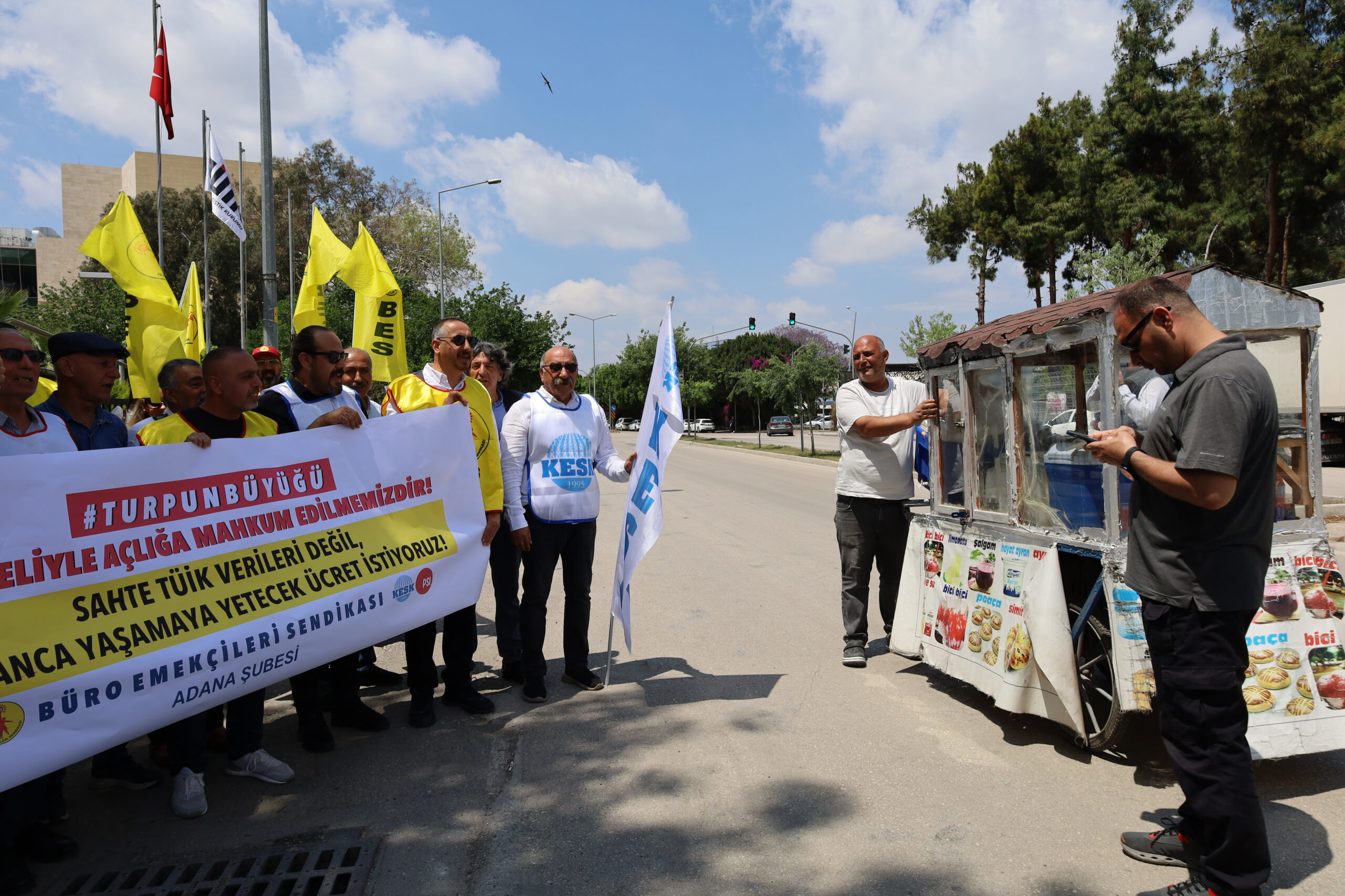 Büro Emekçileri Sendikası (BES) Adana Şubesi açıklanan enflasyon rakamlarını TÜİK Adana Bölge Müdürlüğü önünde yaptığı basın açıklamasıyla protesto etti. Basın açıklamasında konuşan BES Antalya Şube Başkanı Fatma Sarioğuz Güney, TÜİK’in gerçeklikten uzak veri açıklamalarına karşı savcılıklara suç duyurusunda bulunduklarını ve dava açıldığını belirterek, “Yoksulluk gerçek, TÜİK’in açıkladığı enflasyon verileri yalan” diyerek kamu emekçilerinin gerçek yaşam koşullarının gizlenmeye çalışıldığını vurguladı.