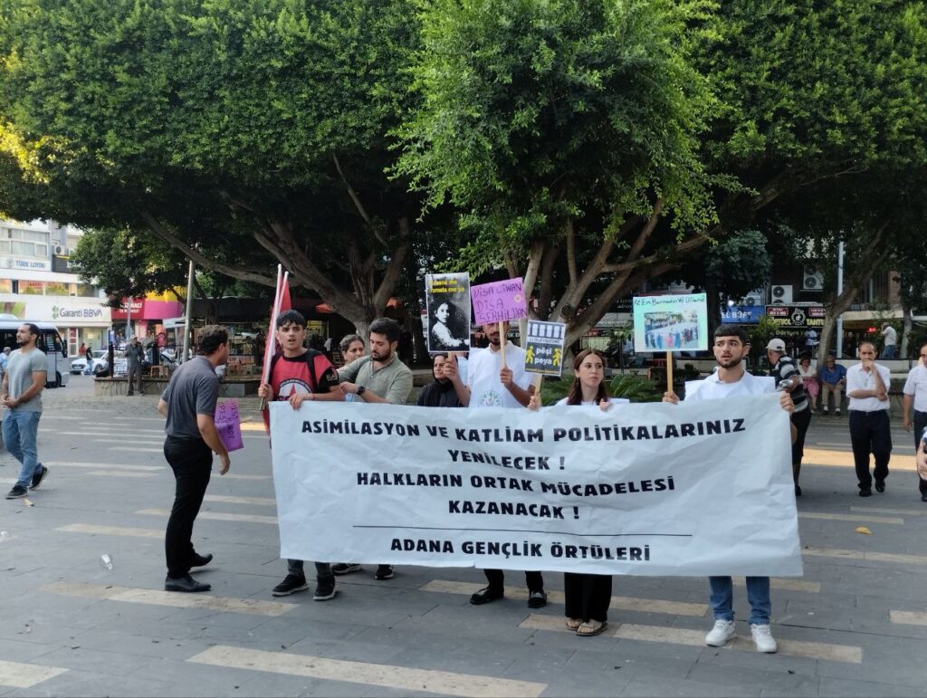 Adana’da bir grup genç, Atatürk Parkı’nda bir araya gelerek, “Asimilasyon ve katliam politikalarınız yenilecek! Halkların ortak mücadelesi kazanacak!” sloganıyla İnönü Parkı’na kadar yürüyüp, orada açıklama yaptı. Grubun sık sık, “Hesap soracağız” demeleri dikkat çekti.