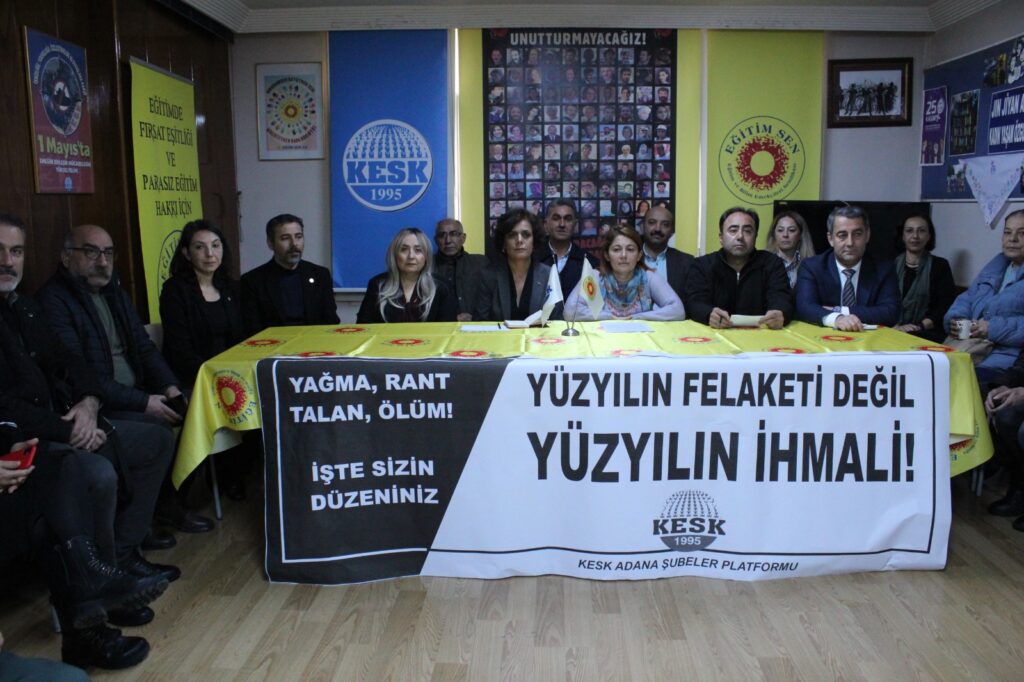 Eğitim Sen Adana Şubesi de kendi binalarında yaptıkları basın açıklamayla depremde yaşamını yitirenleri andı. Açıklamada konuşan KESK Adana Şubeler Platformu Dönem Sözcüsü Gülcan Aydın aradan iki yıl geçse de ne yaslarının bittiğini ne acılarını dindiğini ne de öfkelerini bittiğini belirterek, “Haklarımızın, özgürlüklerimizin ortadan kaldırıldığı bu bozuk düzende sağlam çark olmaz. İnsana, emeğe, doğaya düşman bu bozuk düzene, bu köhne sisteme karşı emek ve demokrasi mücadelemizi kararlılıkla sürdüreceğiz. Kaybettiğimiz tüm vatandaşlarımızı bir kez daha sevgiyle, saygıyla anıyoruz. Depremzede kardeşlerimizle 6 Şubat depreminin ilk gününden itibaren başlattığımız dayanışmamızı büyütmeye, acılarımızı paylaşmaya, yaralarımızı hep birlikte sarmaya devam edeceğiz” diye konuştu.