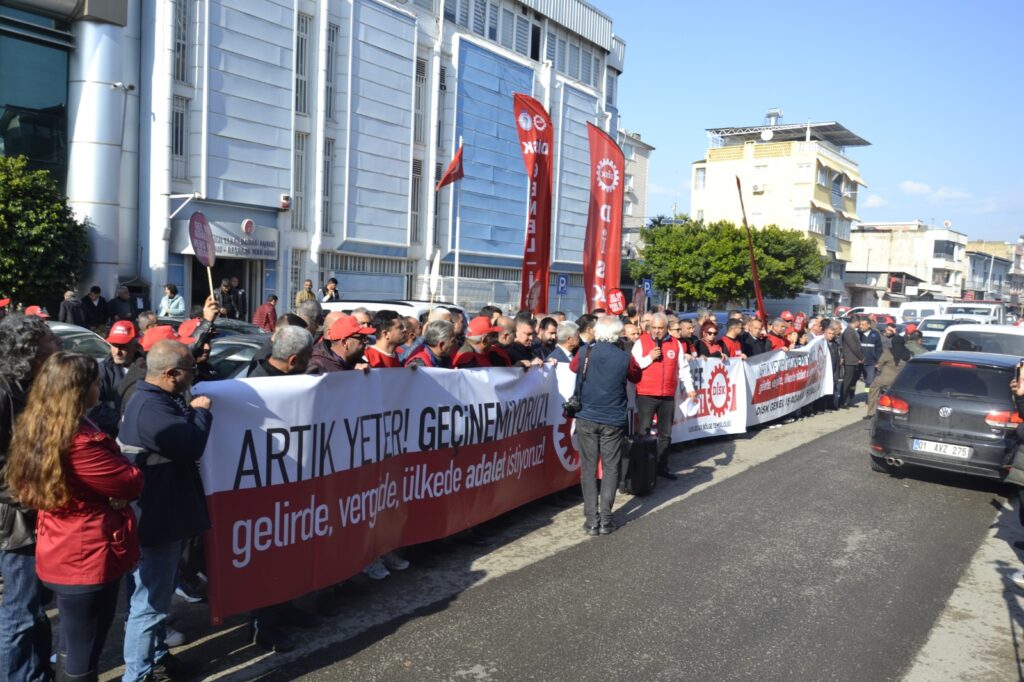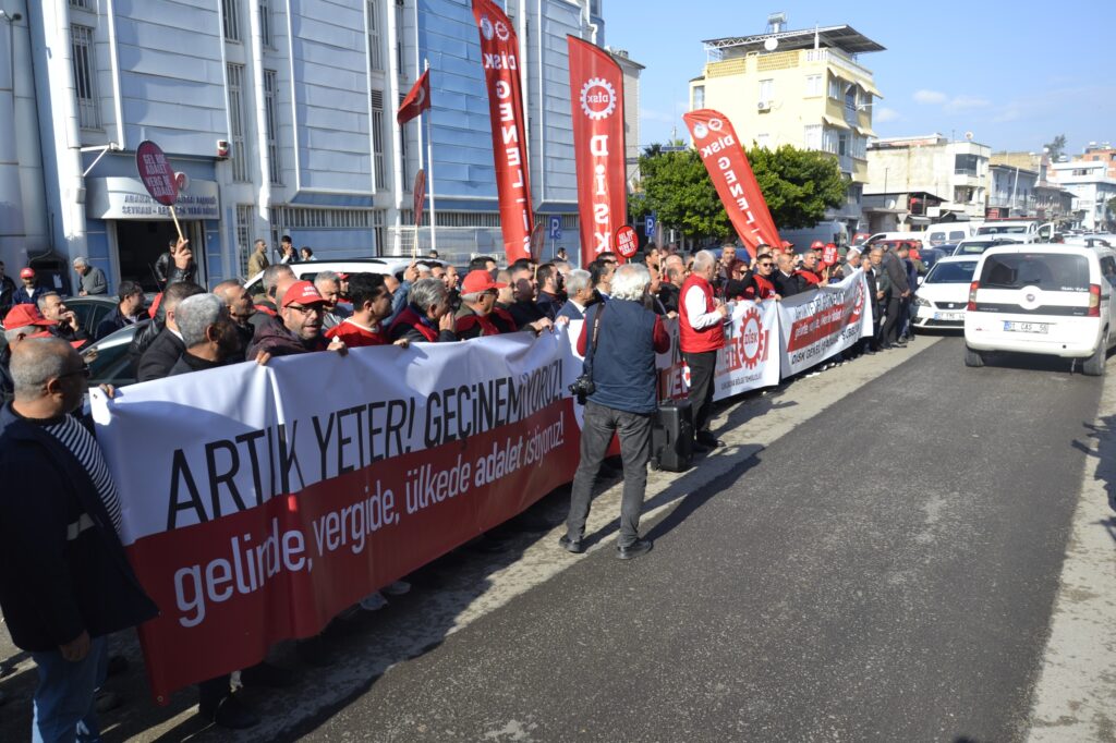 DİSK Çukurova Bölge Temsilciliği, Adana’da 5 Ocak Vergi Dairesi önünde yaptığı basın açıklamasıyla insanca yaşayacak ücret ve vergide adalet istedi. Açıklamada, 22 bin 104 TL olarak açıklanan asgari ücrete yönelik tepkiler de yükseldi. “İnsanca yaşamak istiyoruz” ve “Vergide adalet, gelirde adalet” sloganları atılan eylemde, basın açıklamasını DİSK Genel İş Adana 2 Nolu Şube Başkanı Serdar Çapar okudu.