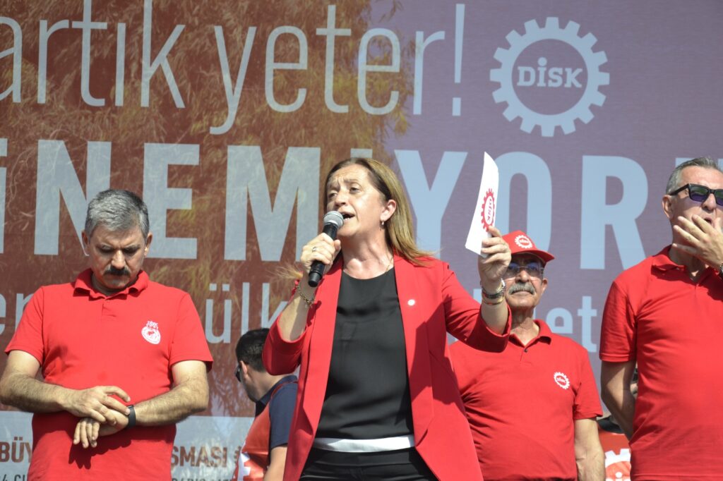DİSK Genel Başkanı Arzu Çerkezoğlu, en düşük emekli maaşının asgari ücret düzeyine yükseltilmesi, staj ve çıraklık sigortası mağdurlarının haklarının iyileştirilmesi ve taşeron çalıştırmanın tamamen kaldırılması için de mücadele edeceklerini belirtti.