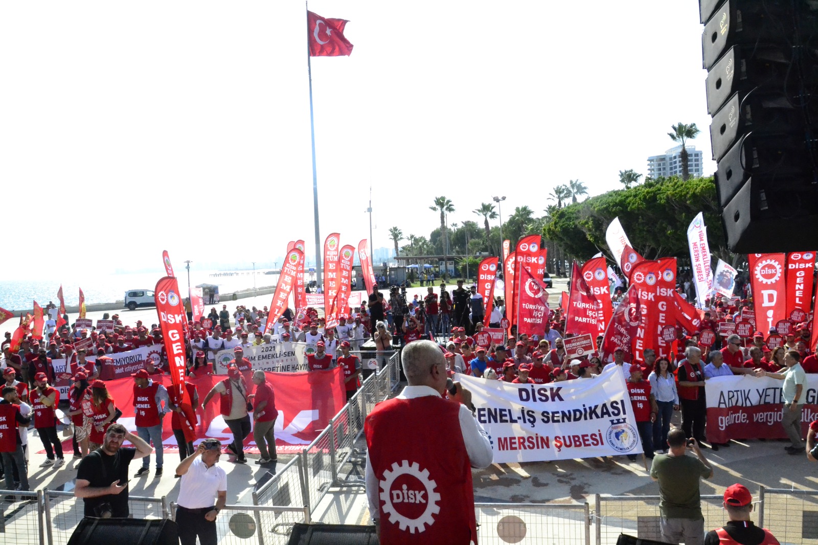 Devrimci İşçi Sendikaları Konfederasyonu (DİSK), Mersin Özgecan Aslan Meydanı’nda “Artık Yeter! Geçinemiyoruz” ve “Gelirde, Vergide, Ülkede Adalet İstiyoruz” başlıklı bir işçi buluşması sönük geçti.