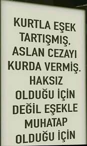 Aslan, tilkiye dönüp,”EŞEKLE TARTIŞTIĞIN için seni suçlu buldum” der..vesselam.