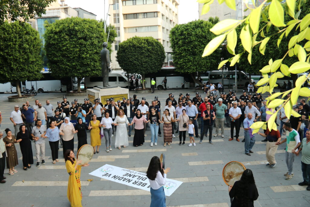 Adana İnönü Parkı’nda bir araya gelen DEM Partililer, Kürtçe şarkılar eşliğinde halay çekip “örgüt propagandasını yaptıkları” iddiasıyla tutuklananların durumunu halaylarla protesto etti.