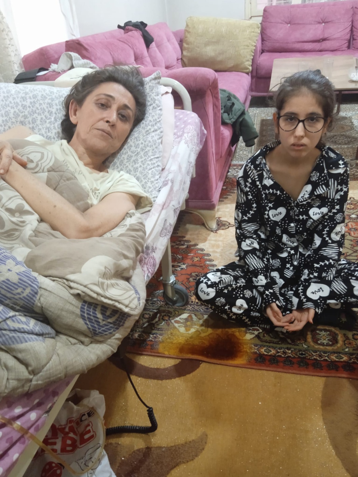Artık dayanacak gücünün kalmadığını dile getiren Özlem Arat, “Çok fazla ameliyat oldum ama daha da kötüye gidiyorum. Çocuklarım okula gidemiyor, eşim işi bırakmak zorunda kaldı. Kalçamdaki protez çıktı ve dışarıdan görünüyor. Şu an tamamen yatağa bağlı yaşıyorum. Kalçamdaki kemiklerin çürümesi nedeniyle protez takılması gerekiyor dediler, protezi yanlış taktılar. Benim ayaklarım şişti ve kendi ihtiyaçlarımı göremiyorum. Artık gücüm yok, yataktan kalkmıyorum” ifadelerini kullandı.
