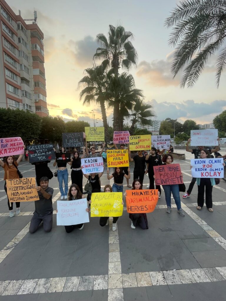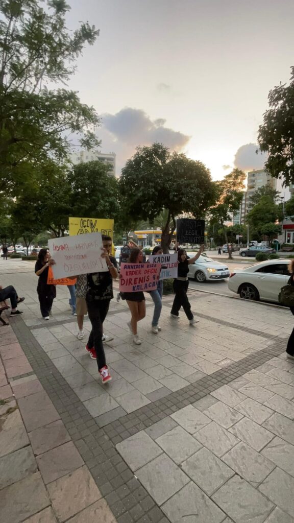 Adana’da bir grup liseli öğrenci, artan kadın cinayetlerini Çukurova ilçesinde yaptıkları yürüyüş ve oturma eylemi ile protesto etti.