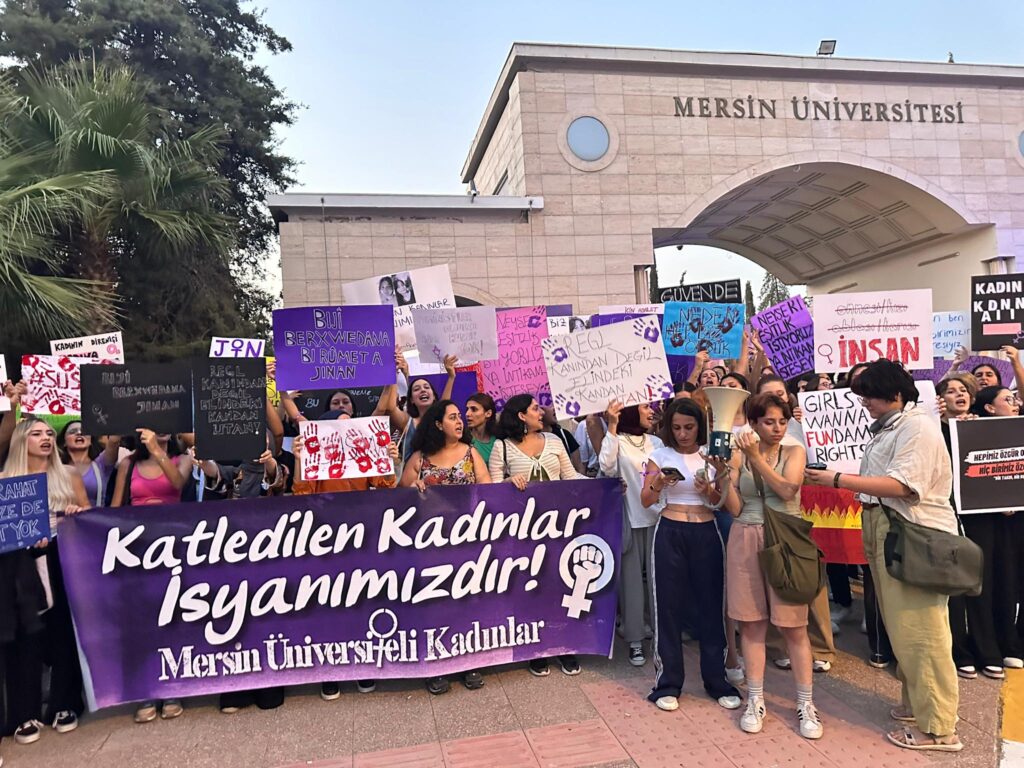 Mersin Üniversitesi’nde okuyan öğrenciler, son dönemde artan kadın cinayetlerine karşı üniversite önünde bir araya gelip, Üniversite Caddesi üzerinde yürümek istedi. Ancak polis izin vermeyerek biber gazı ile öğrencilere müdahale etti. Polisin müdahalesine rağmen öğrenciler Üniversite Caddesi boyunca yürüyüp açıklama yaptı.