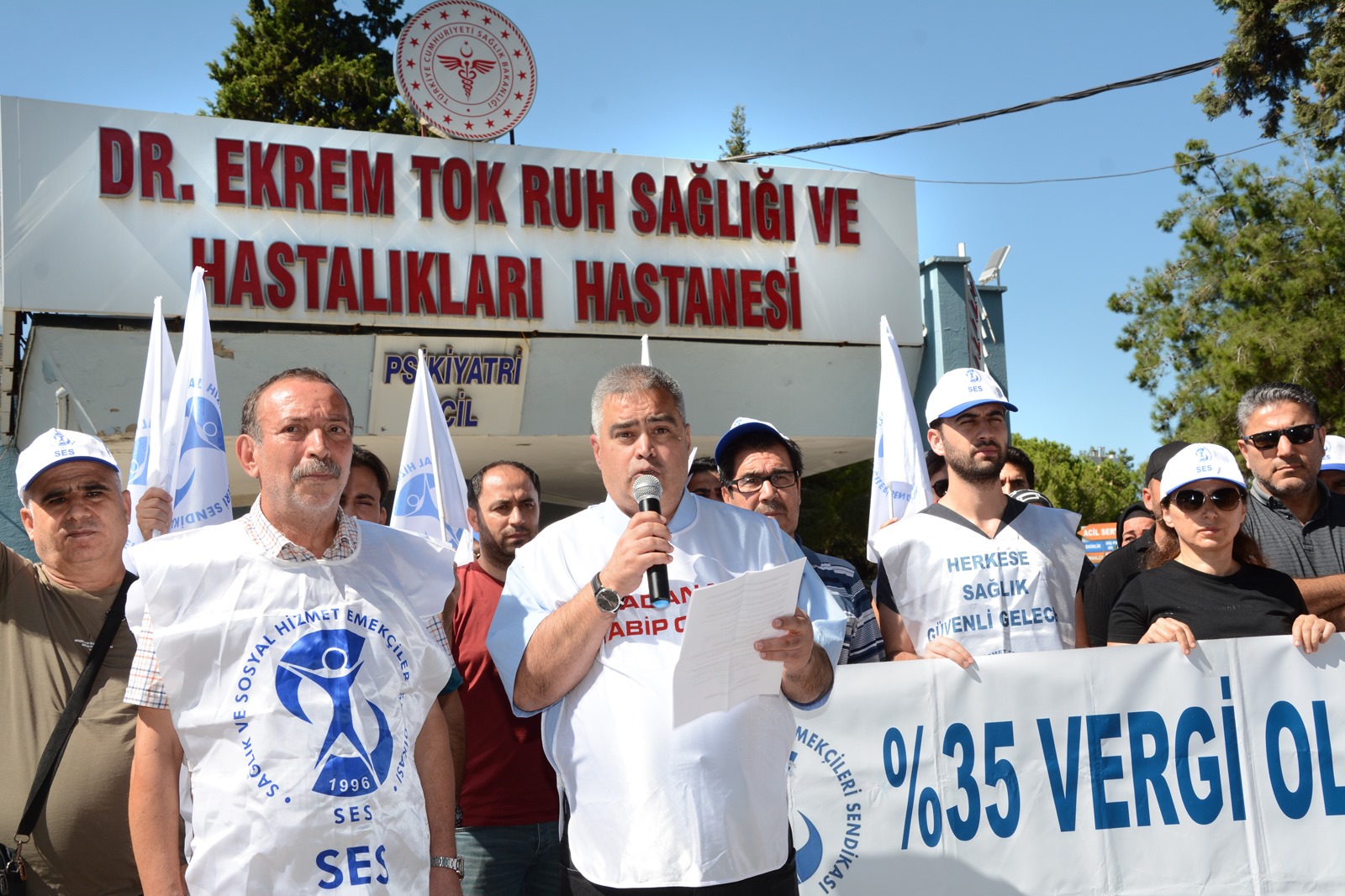 Adana Tabip Odası ile Sağlık ve Sosyal Hizmet Emekçileri Sendikası Yönetici ve üyeleri 30 haftadır çalıştıkları sağlık merkezleri önlerinde vergide adalet istemeye devam ediyor. Adana Tabip Odası Başkanı Uzm. Dr. Özden Polatöz, “Yoksulluk giderilmeden toplum sağlıklı olmaz. Yoksulluğa karşı mücadele etmek mesleki sorumluluğumuzdur” dedi.