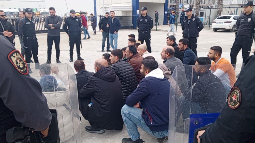 Fabrika önünde bekleyen işçiler, polisin engellemesi ile karşılaştı. Fabrika önünden ayrılmaları istenilen işçiler, çevik kuvvet polislerince ablukaya alındı. Uzun süre ablukaya alınan işçiler, yaptıkları görüşme sonrası fabrika kapısına yakın bir yerde eylemlerini sürmeye devam etti.
