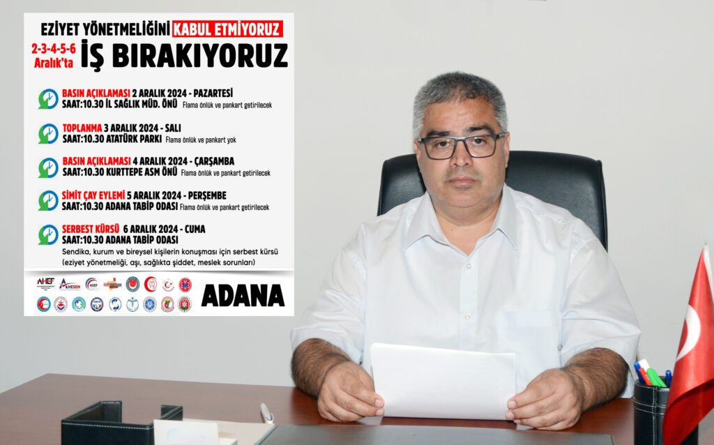 Aile Hekimlerinin Türkiye genelinde daha önce 3 günlük iş bırakma eylemi gerçekleştirdiğini hatırlatan Adana Sağlık Platformu Sözcüsü ve Adana Tabip Odası Başkanı Uzm. Dr. Özden Polatöz,  bileşenler adına yaptığı açıklamada “Bu kez ‘Eziyet Yönetmeliğine’ karşı aile hekimliği çalışanları meslek onuru ve halkın sağlığı için 2-6 Aralık tarihleri arasında iş bırakacaktır” dedi.